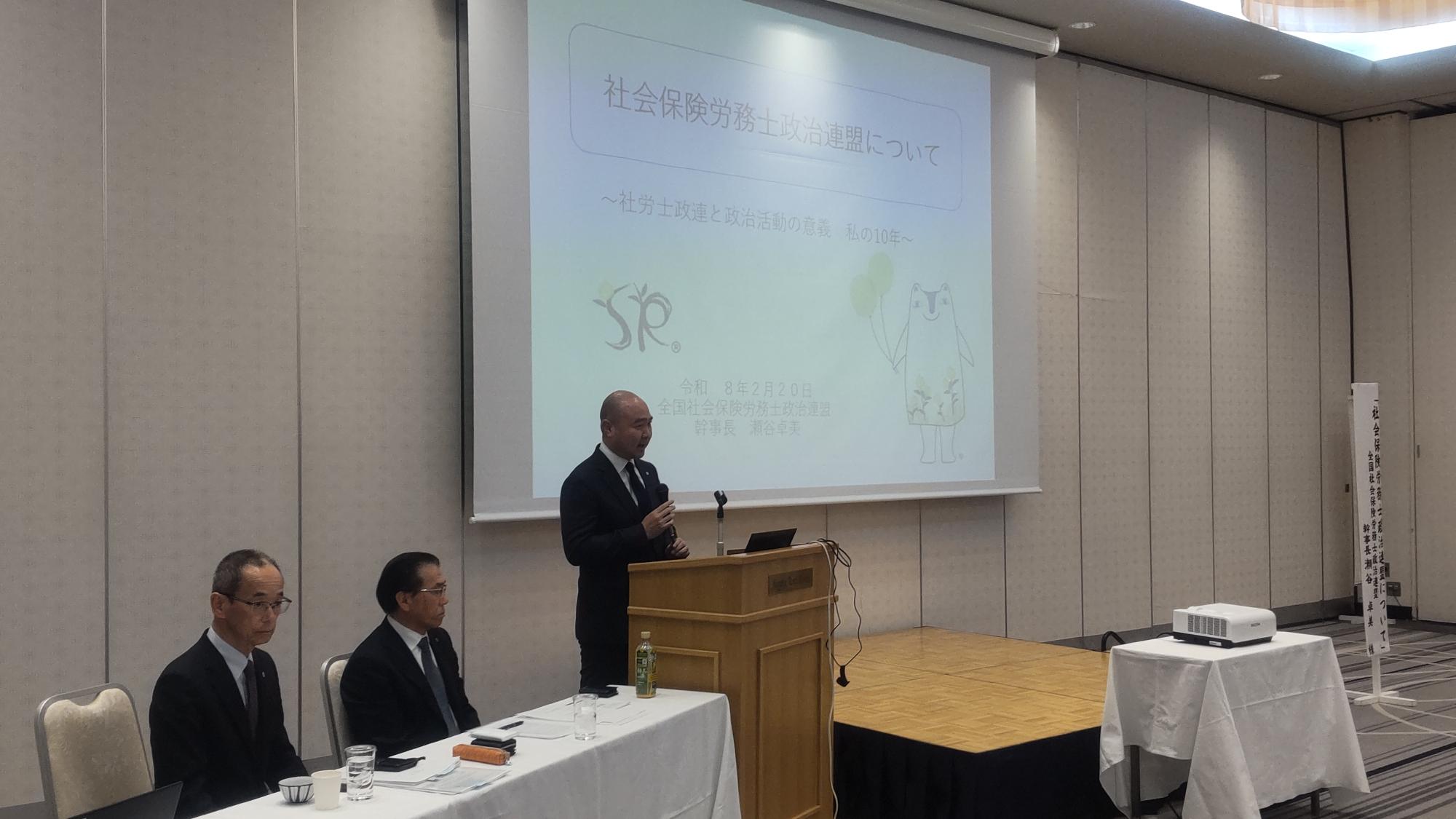 2月20日、石倉会長と瀬谷幹事長は、新潟東映ホテルで行われた、新潟県社会保険労務士政治連盟の研修会にて、講師を務めました。