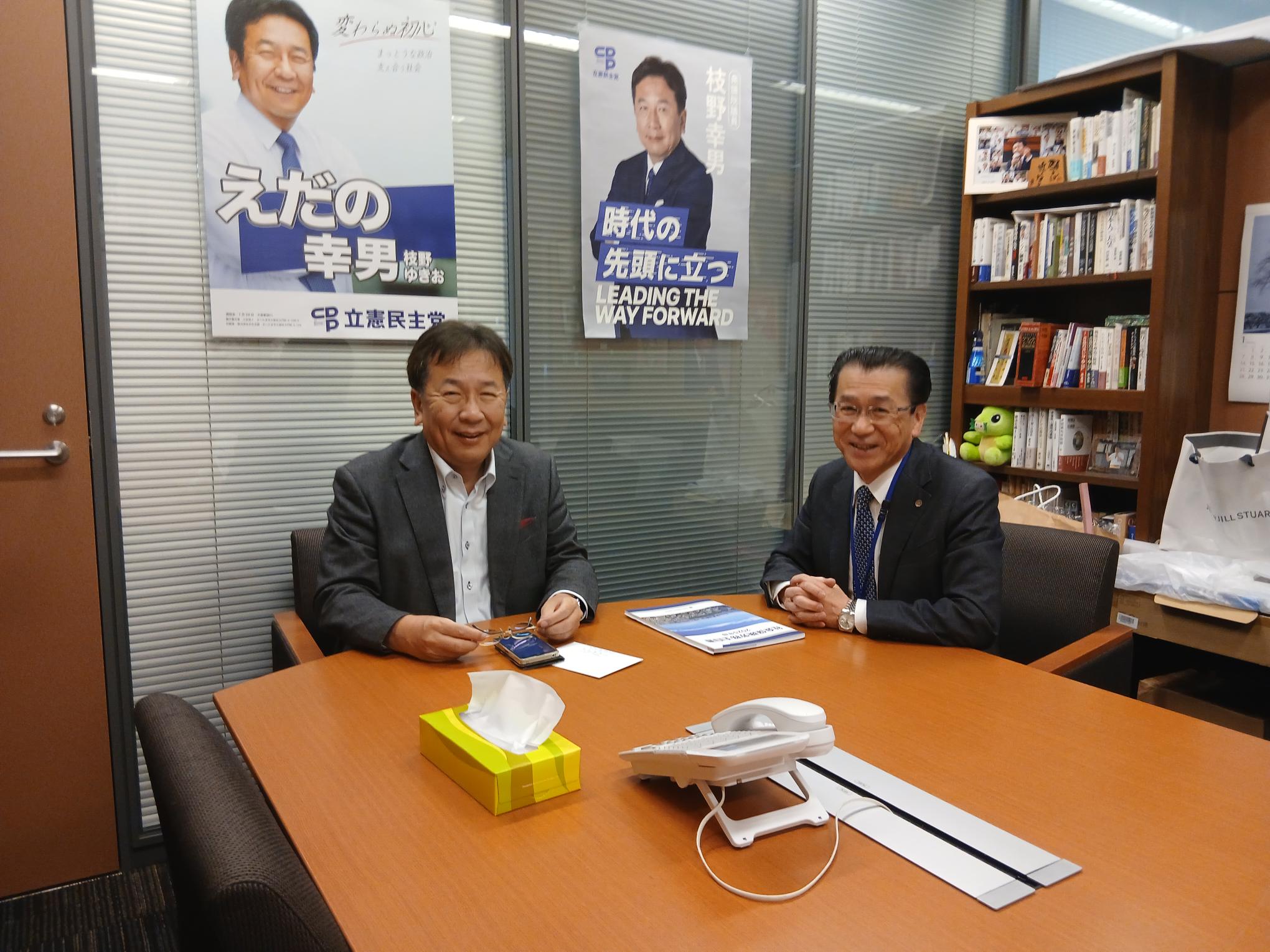枝野 幸男衆議院議員(立憲民主党社会保険労務士議員懇談会 会長)、福山 哲郎参議院議員(立憲民主党社会保険労務士議員懇談会 幹事長)