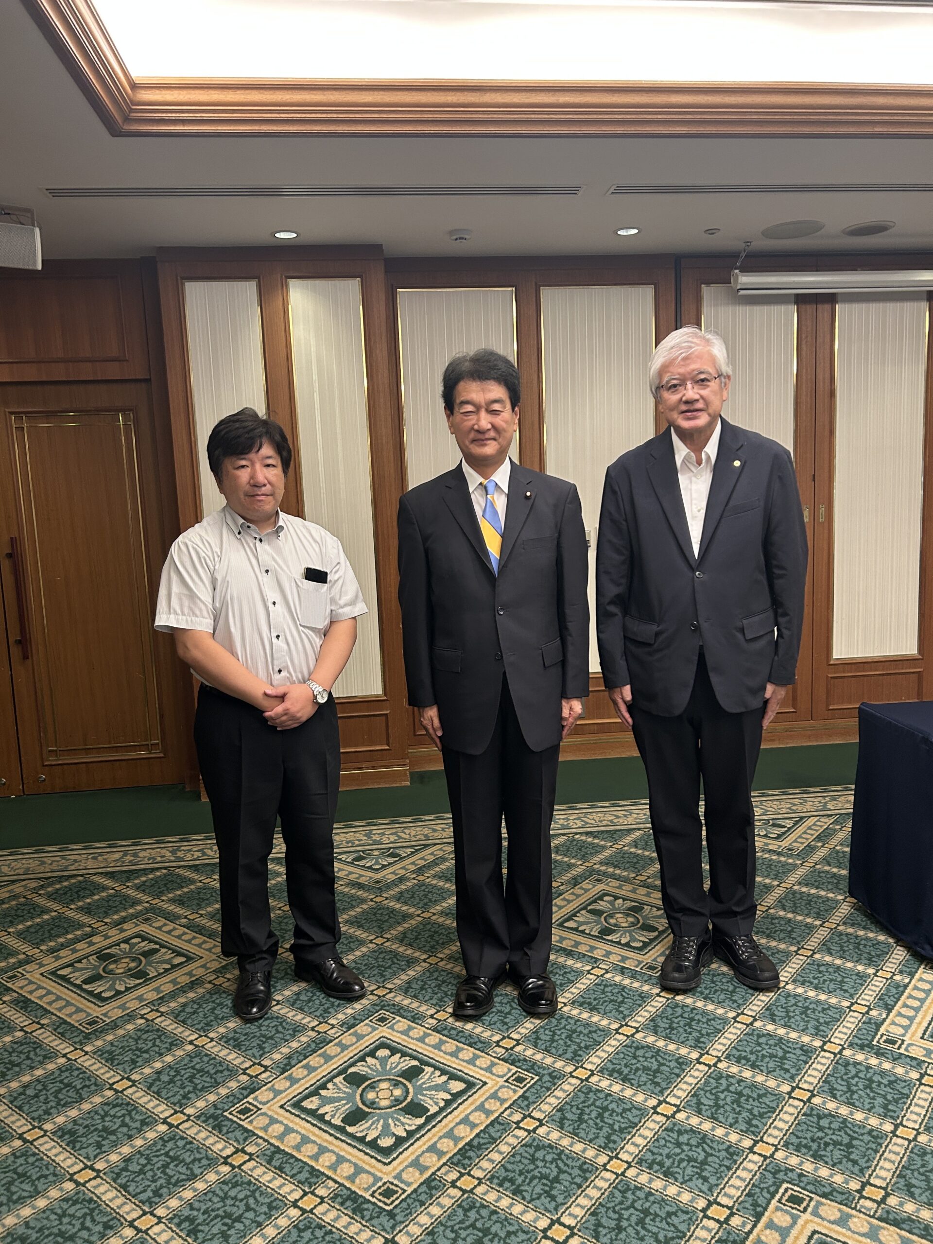 7月29日、石倉正仁会長は、若林正清連合会会長、鈴木英二郎幹事長代理とともに、 古川元久 衆議院議員(国民民主党社会保険労務士制度推進議員連盟 会長)の事務所を訪問しました。