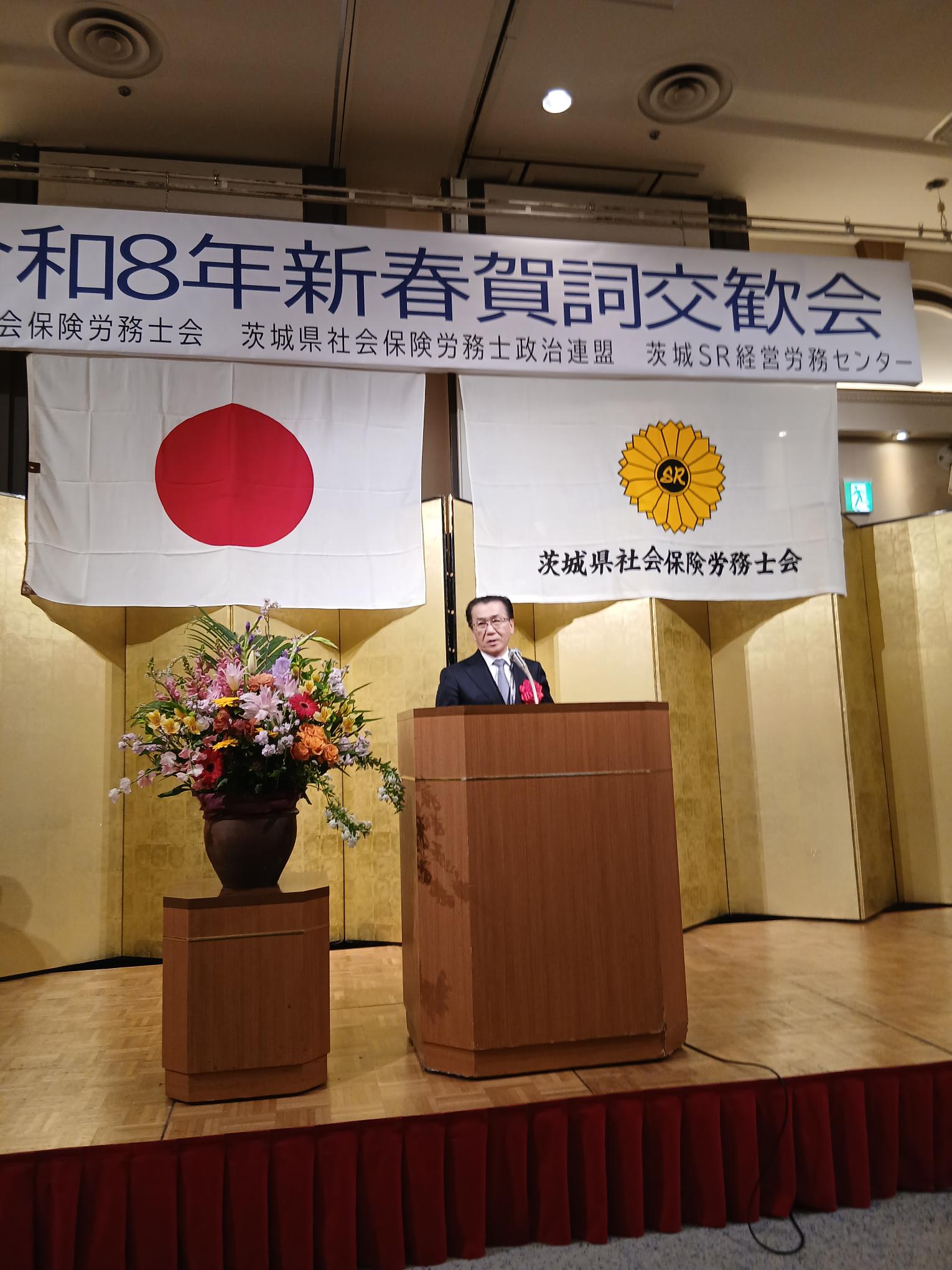 1月28日、石倉会長は、水戸京成ホテルにて行われた、茨城県会・政連・SR共催の「新春賀詞交歓会」に出席しました。