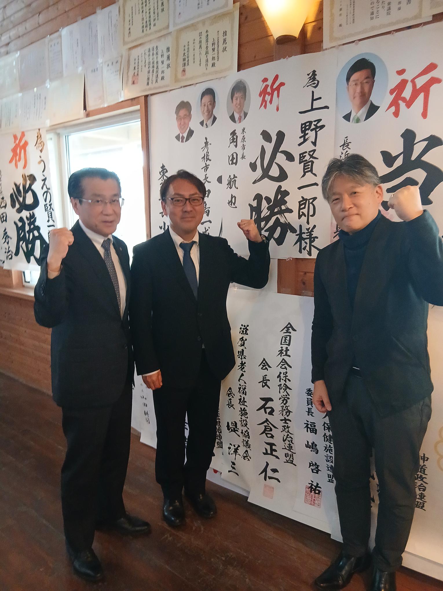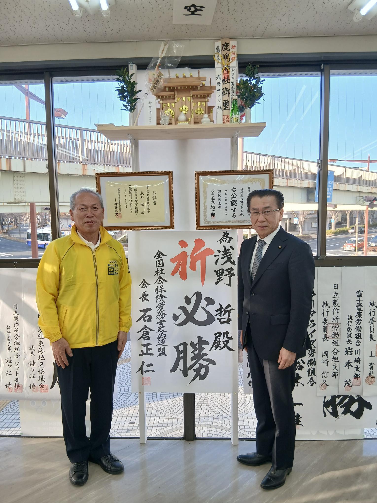 1月28日、石倉正仁会長は、衆議院議員総選挙の推薦候補者を応援するため、浅野哲候補(国民民主党・選挙区:茨城県)の選挙事務所を訪問しました。