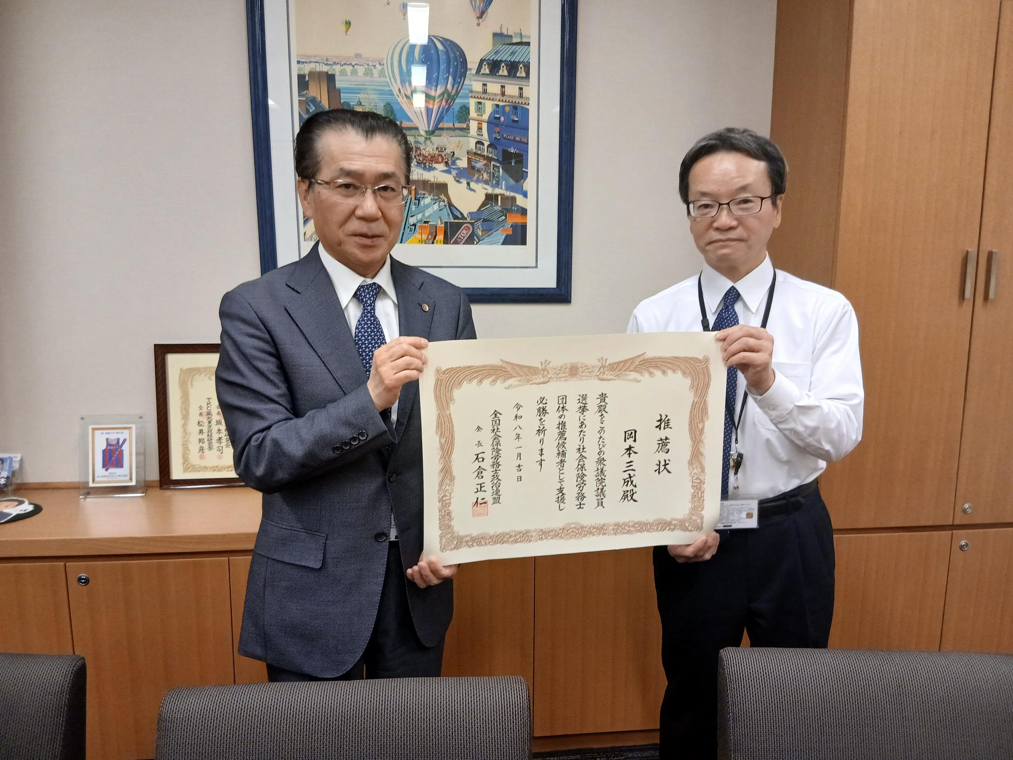 1月28日、石倉正仁会長は、衆議院議員総選挙の推薦候補者を応援するため、森英介候補(自由民主党・選挙区:千葉県)の選挙事務所を訪問しました。