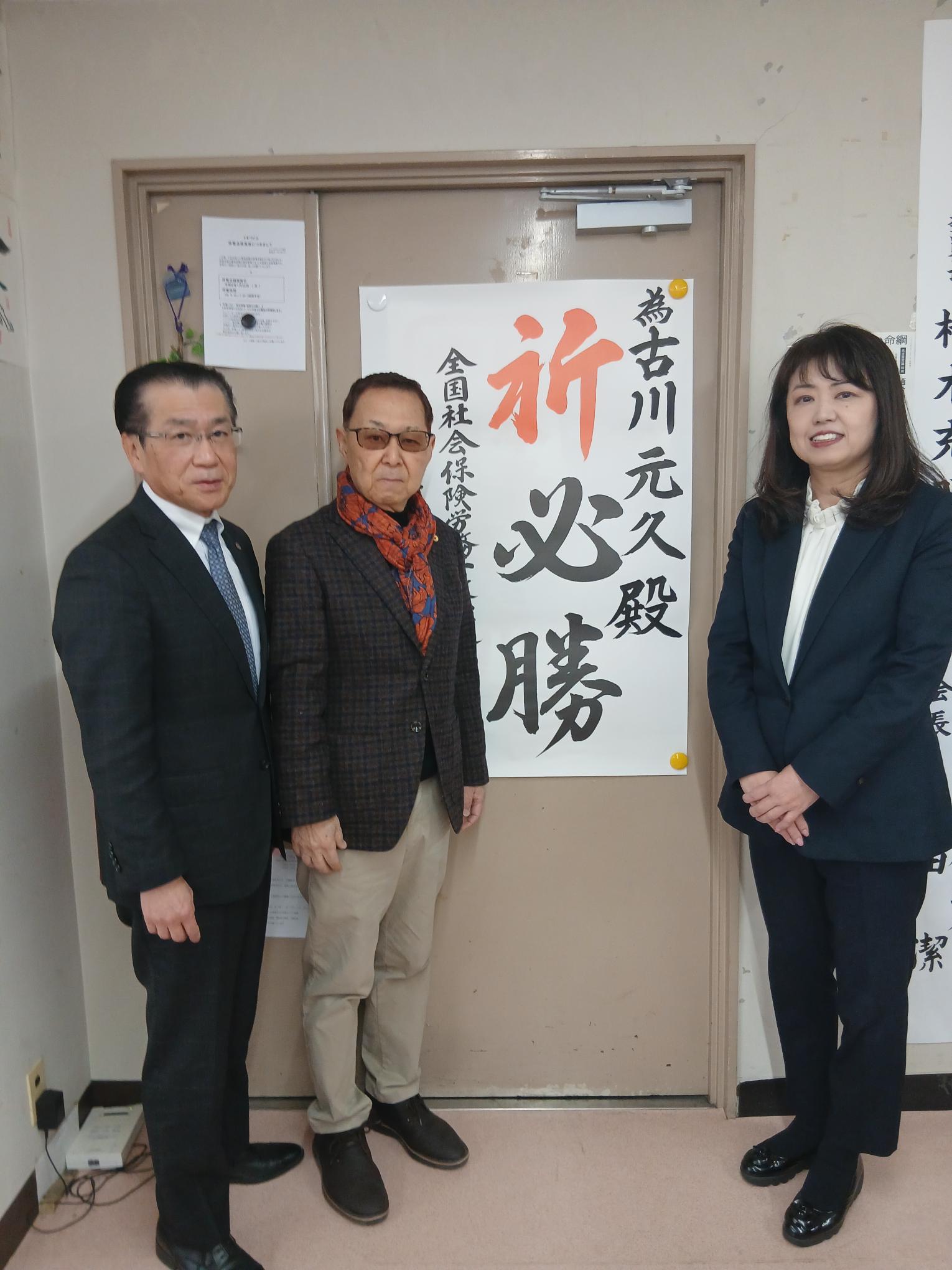 1月31日、石倉正仁会長は、衆議院議員総選挙の推薦候補者を応援するため、富田副会長(愛知会)と共に、古川元久候補(国民民主党・選挙区:愛知県)の選挙事務所を訪問しました。
